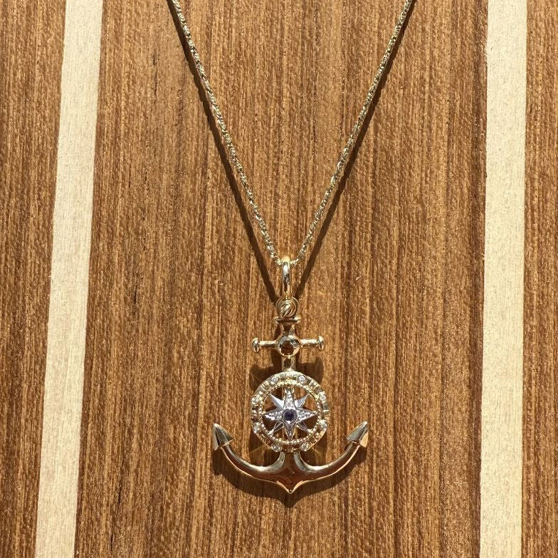Anchor Compass Pendant w/Diamond Sapphire