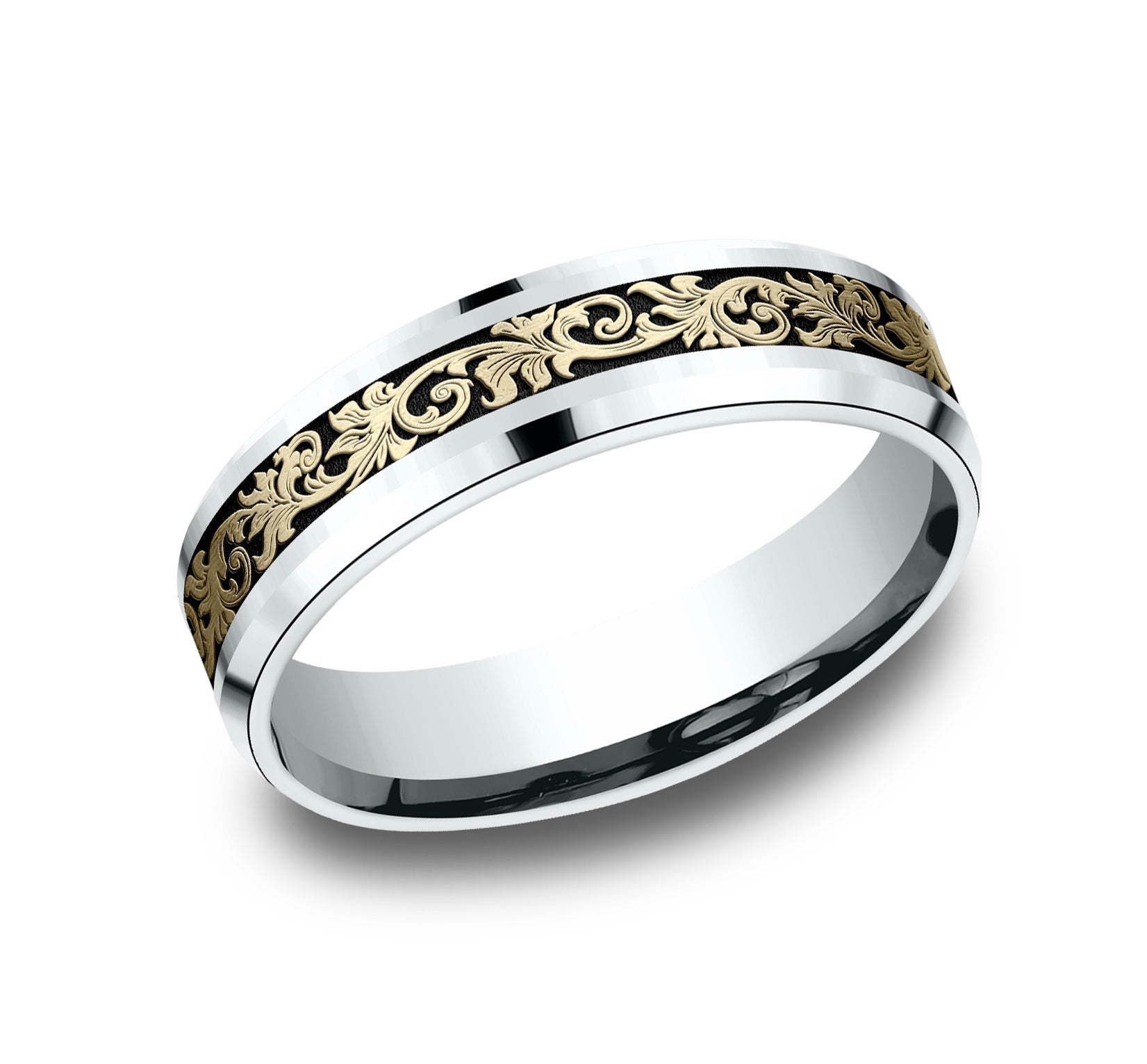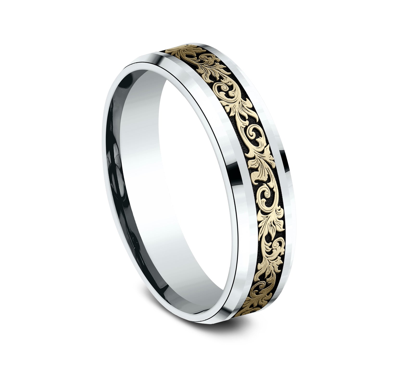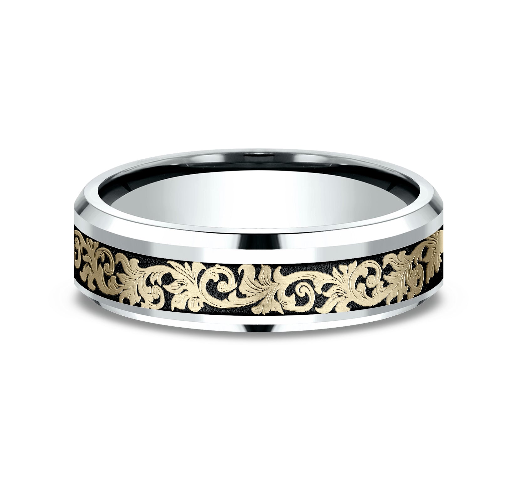 Vintage script pattern with wear resistant black detailing, polished bevel edges
