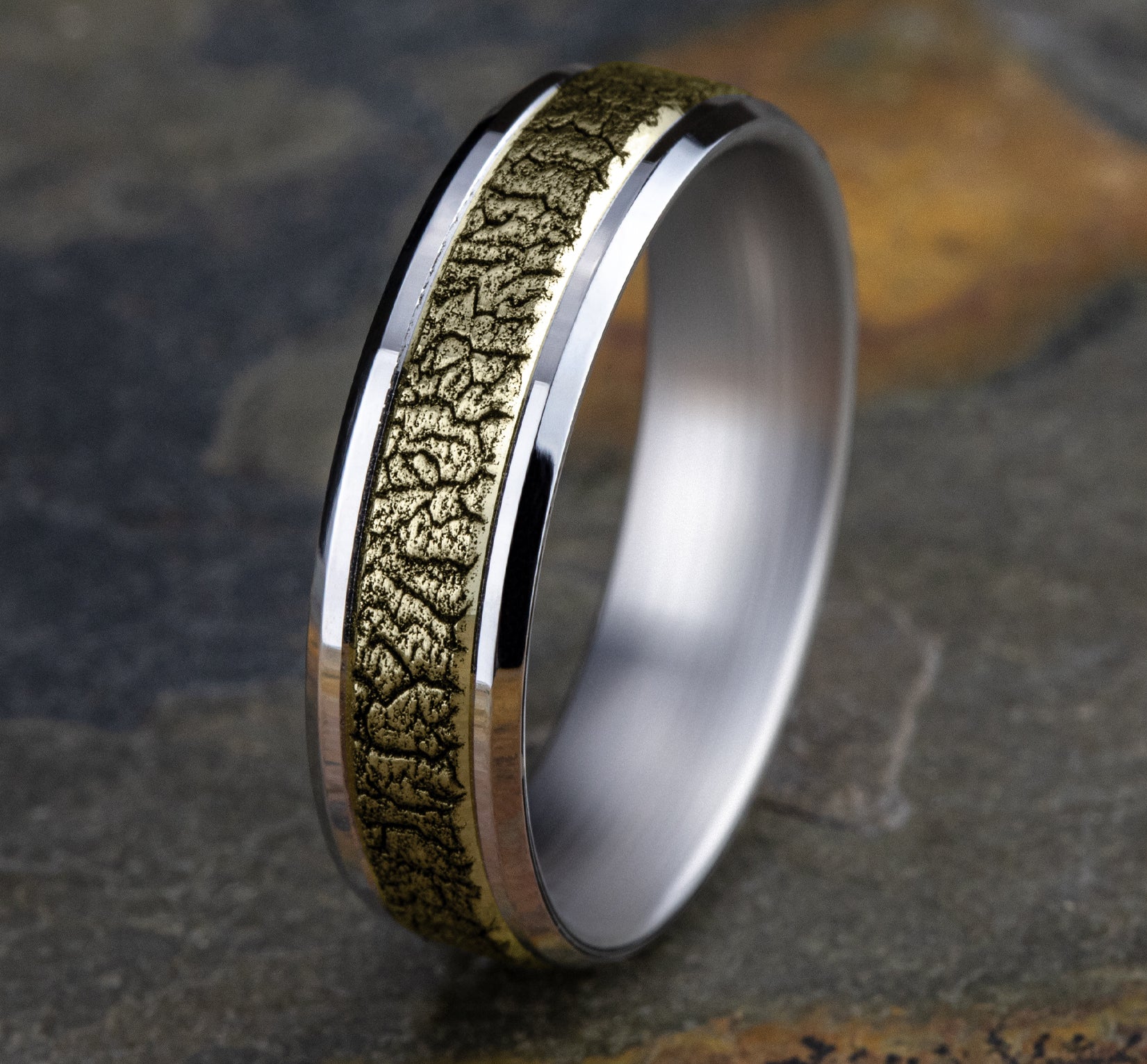 Tree bark patterned center, polished bevel edges