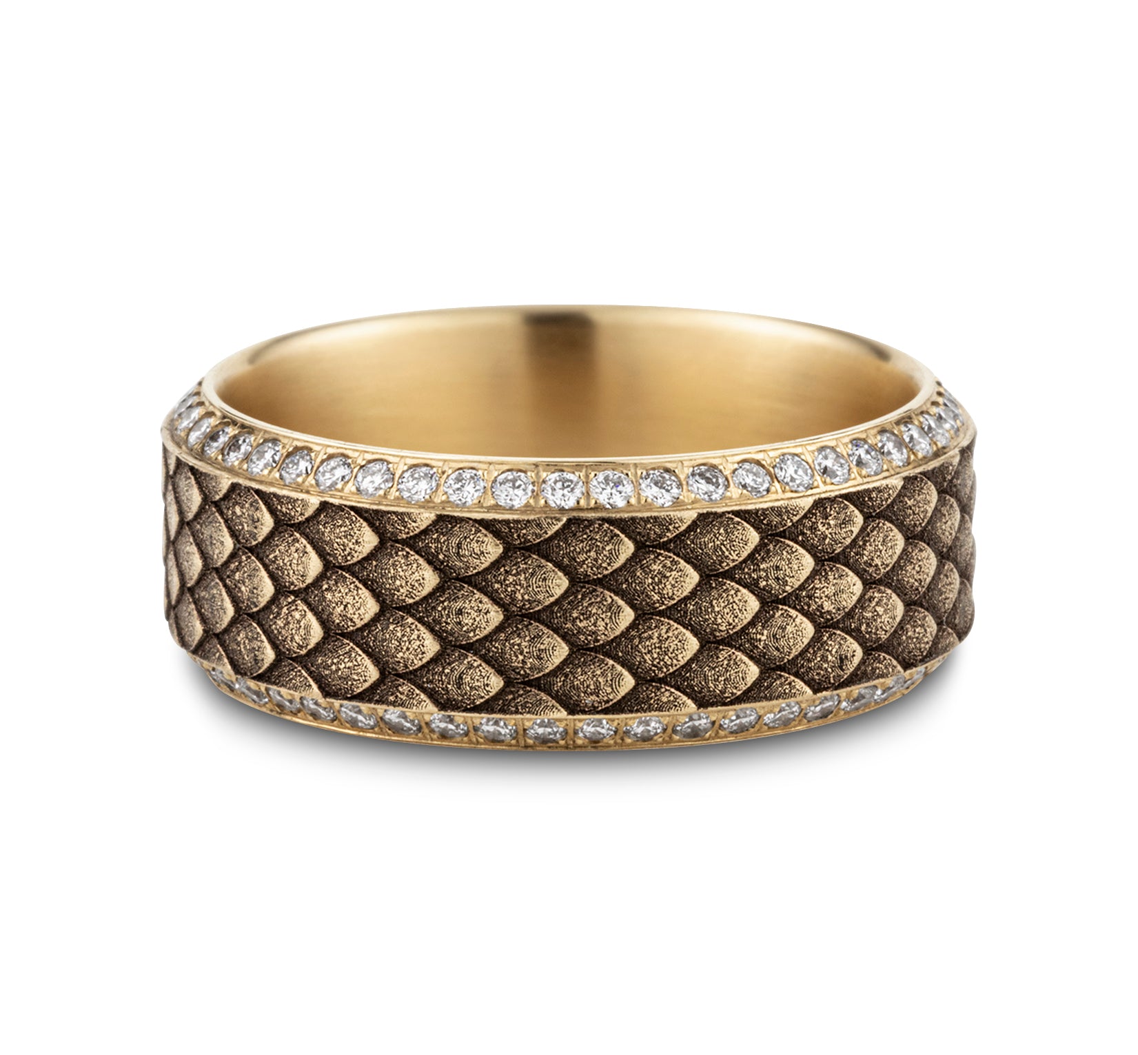 Dragon scale patterned center with double eternity diamond edges