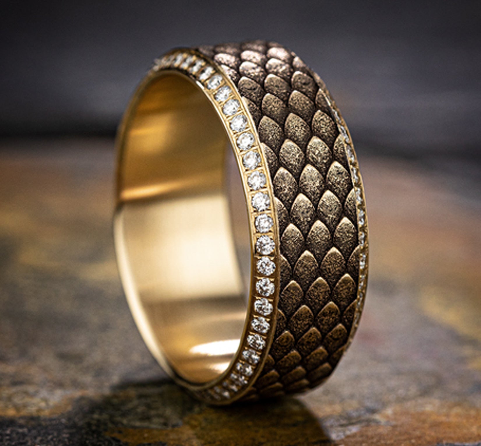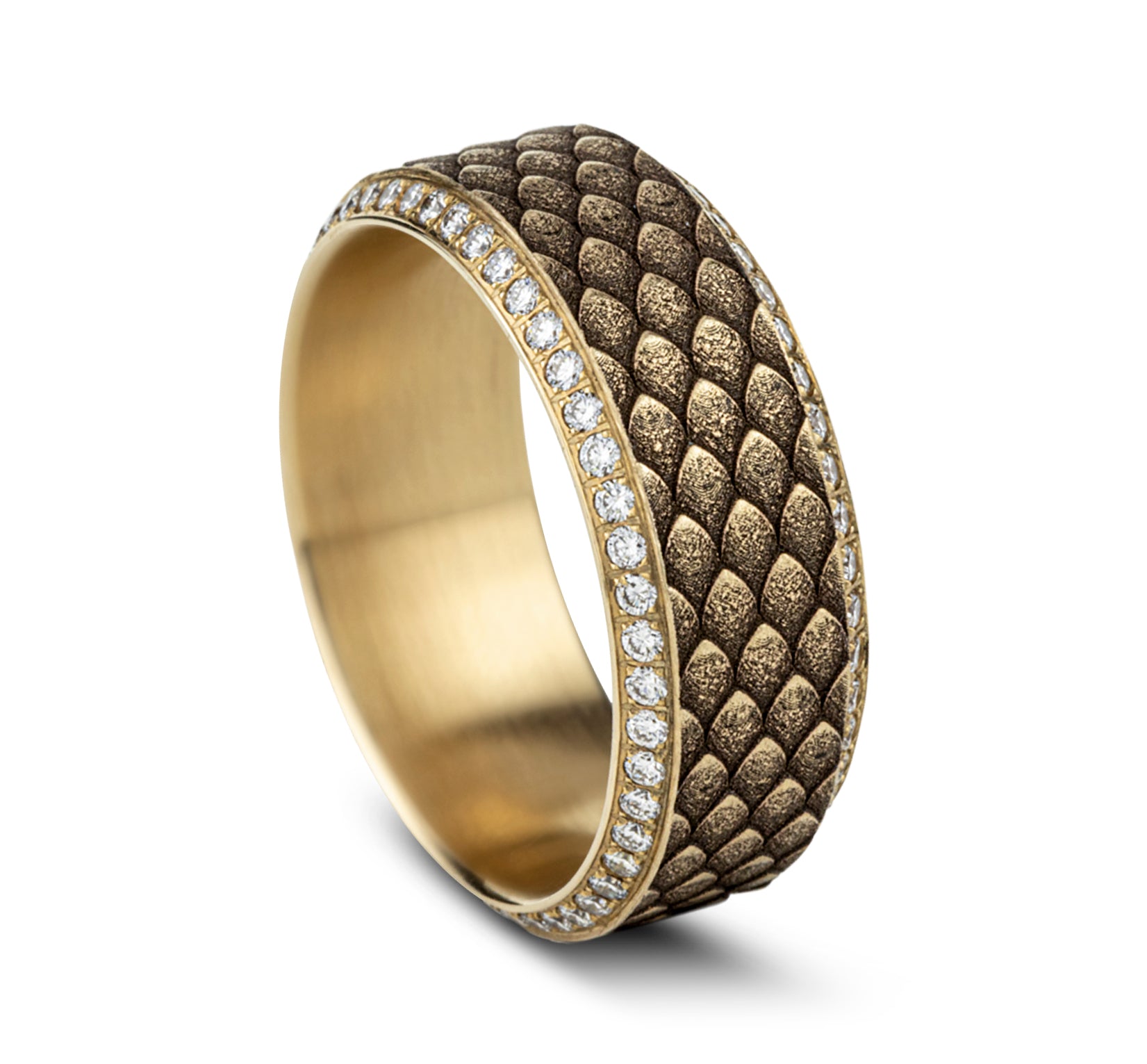 Dragon scale patterned center with double eternity diamond edges
